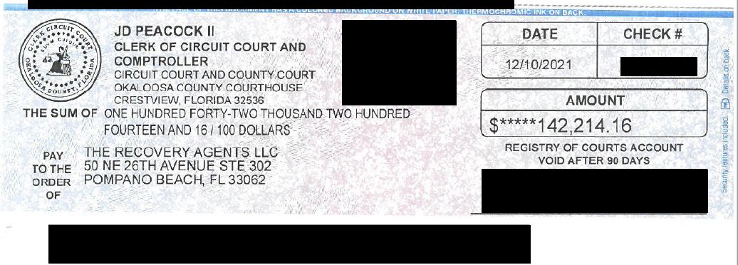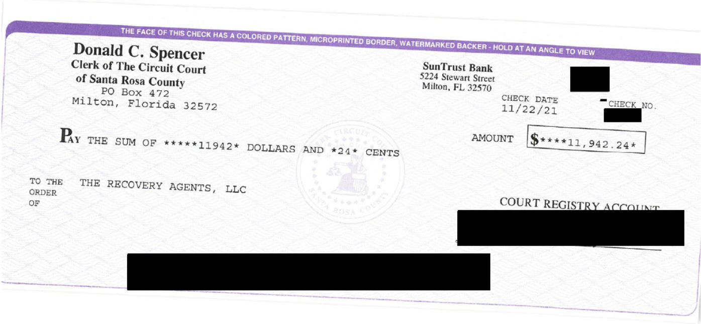 These are images of real checks from the Clerks of Court, each for a different customer for their money that we were able to win back for them after they lost their home to foreclosure. Because these customers chose to work with The Recovery Agents, we were able to recover for them all of the money that they were rightfully owed.